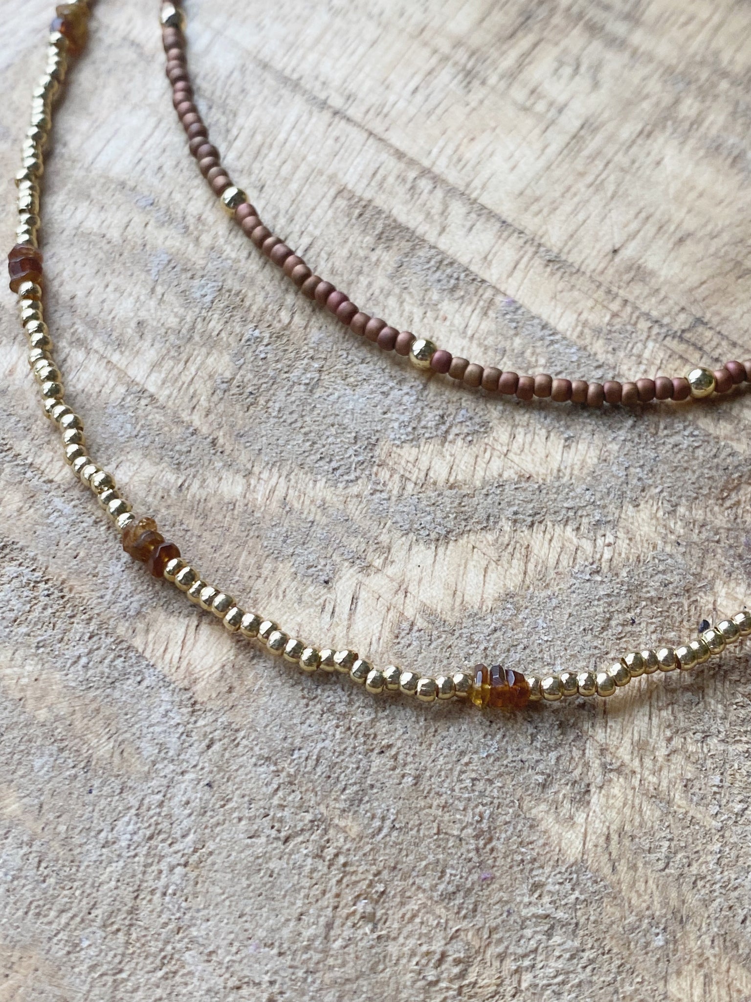 > die längere Kette ist aus Gold filled und Turmalin