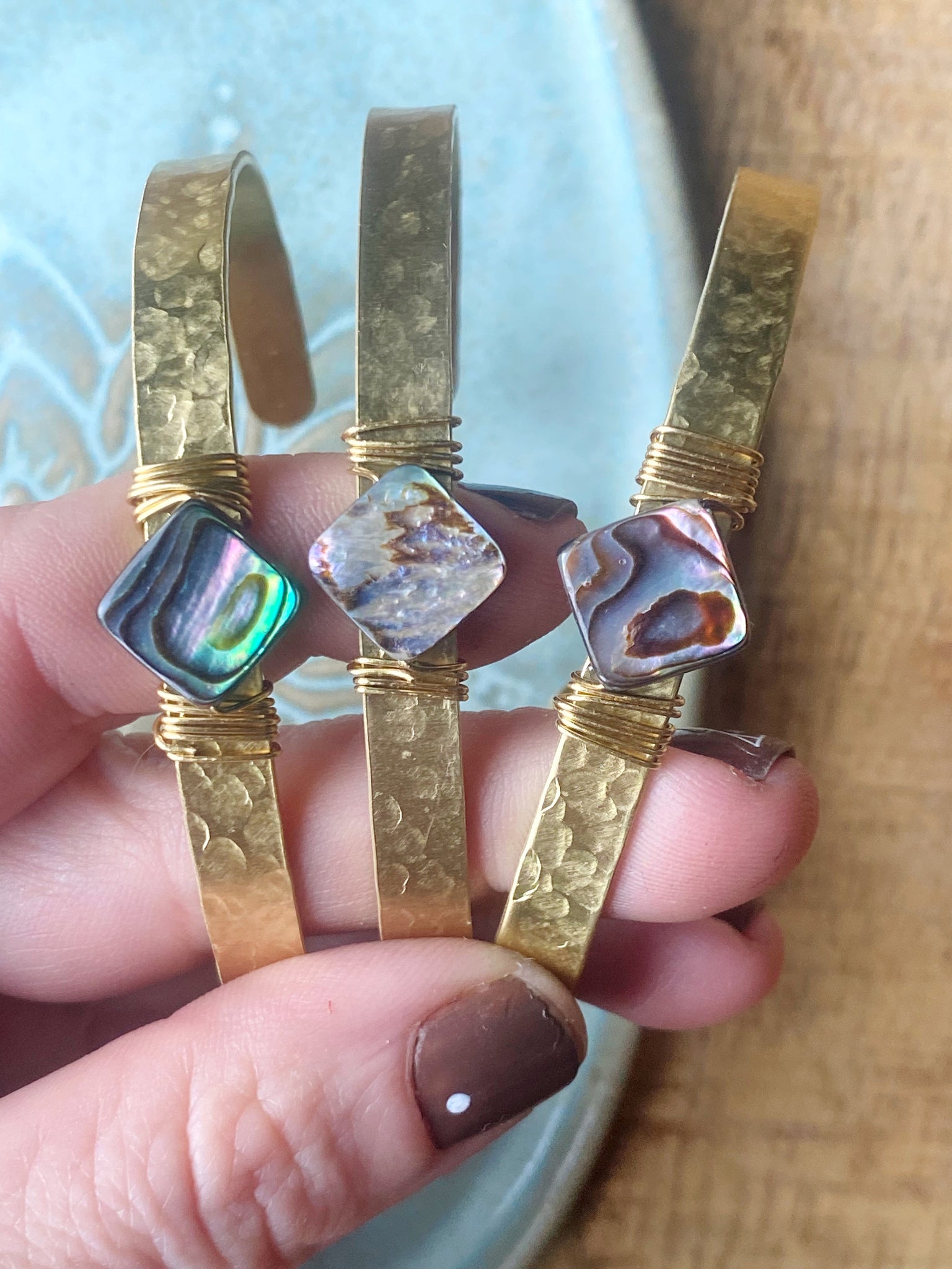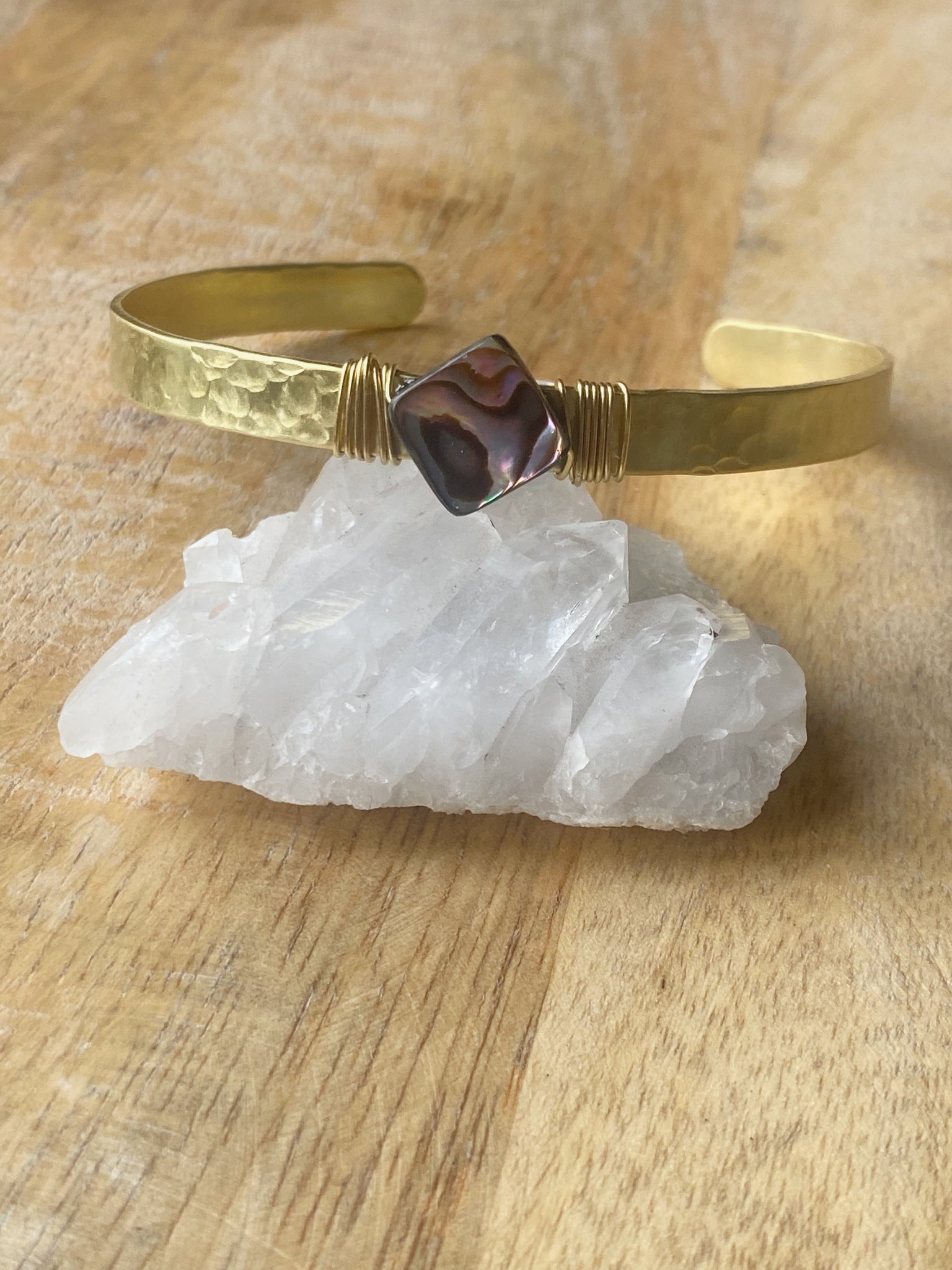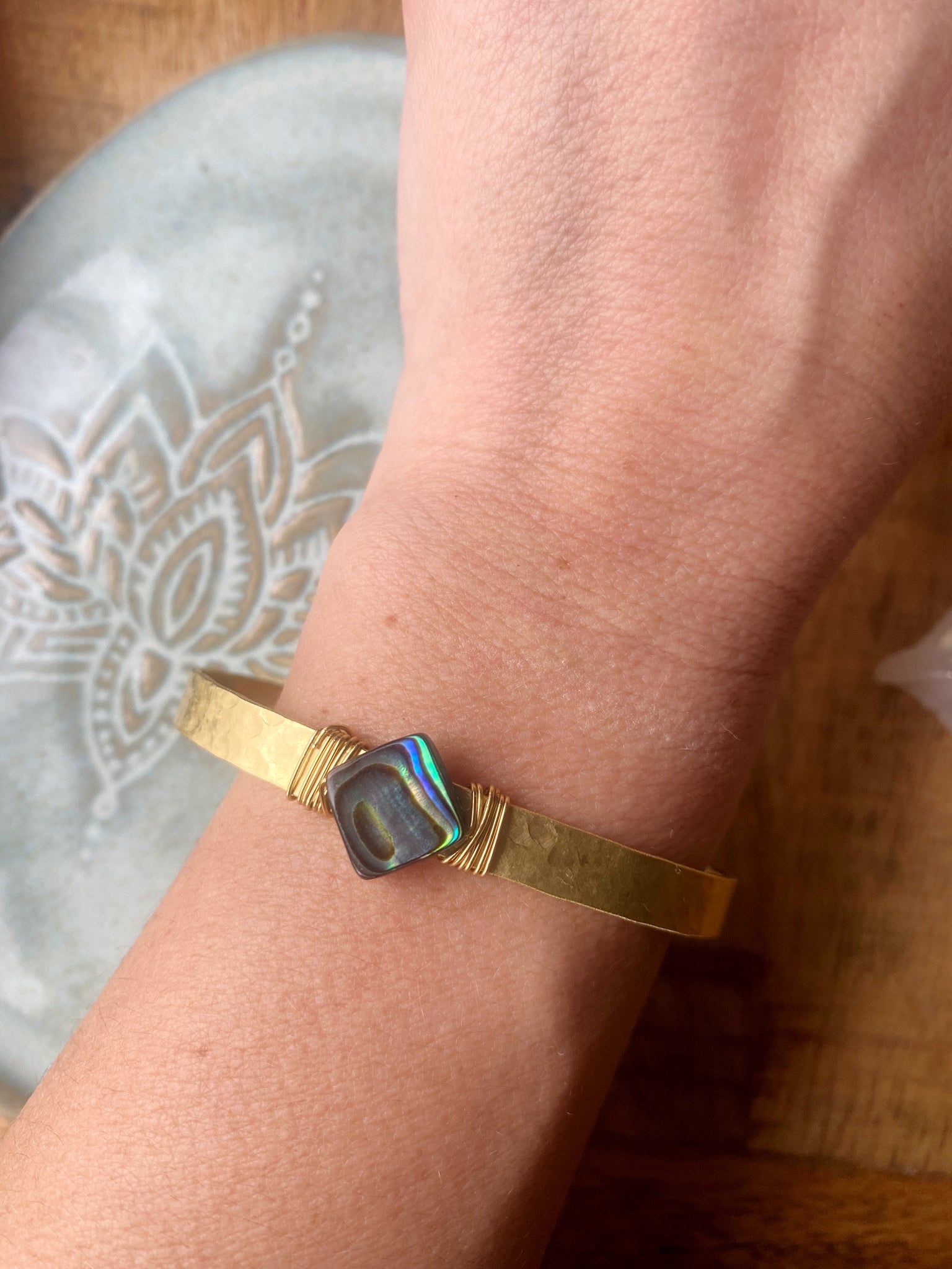 >Handgemachte Manschette aus Juwelier Messing mit Abalone Muschel