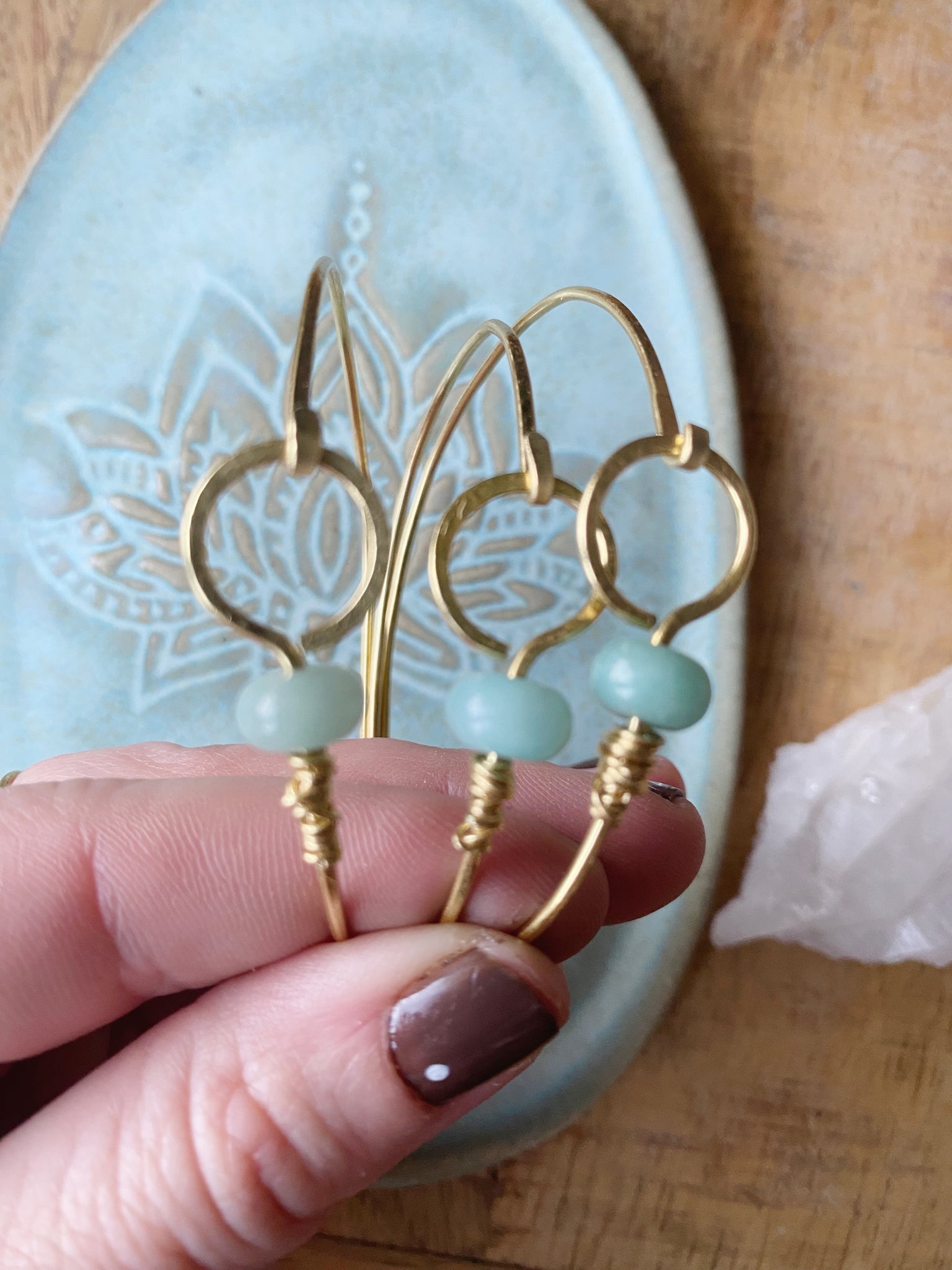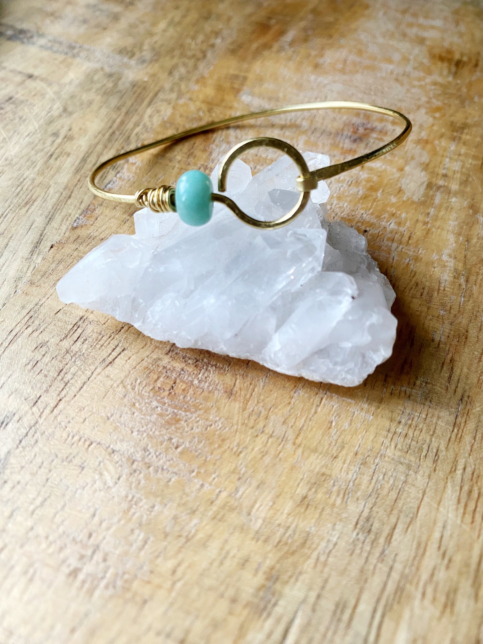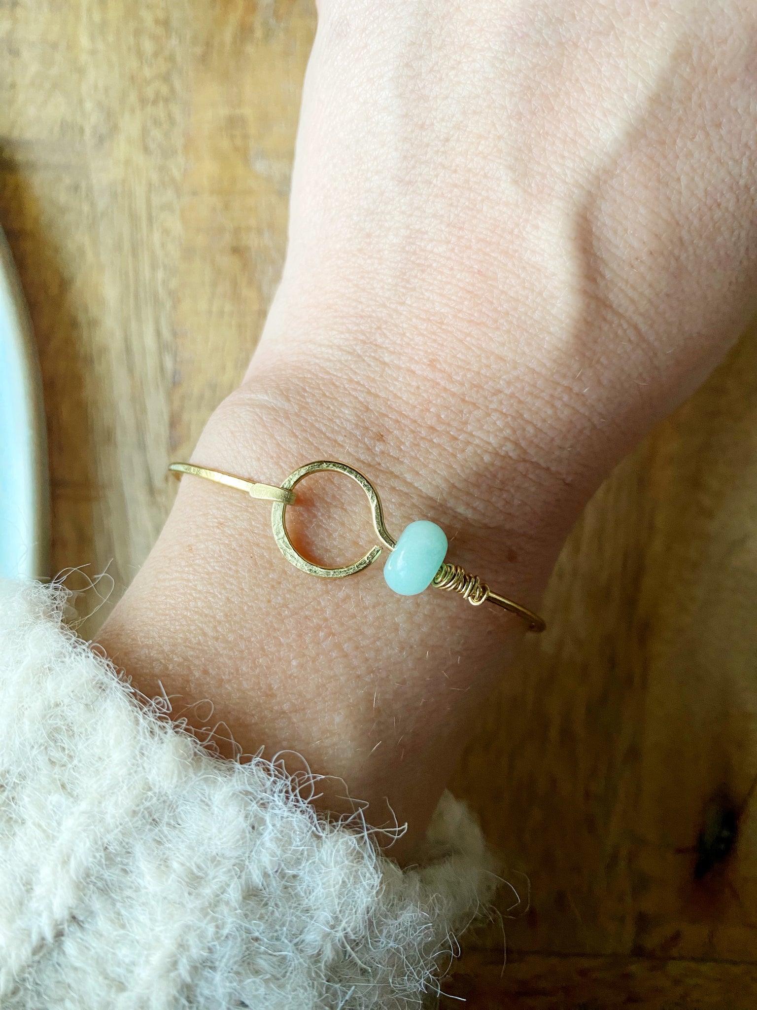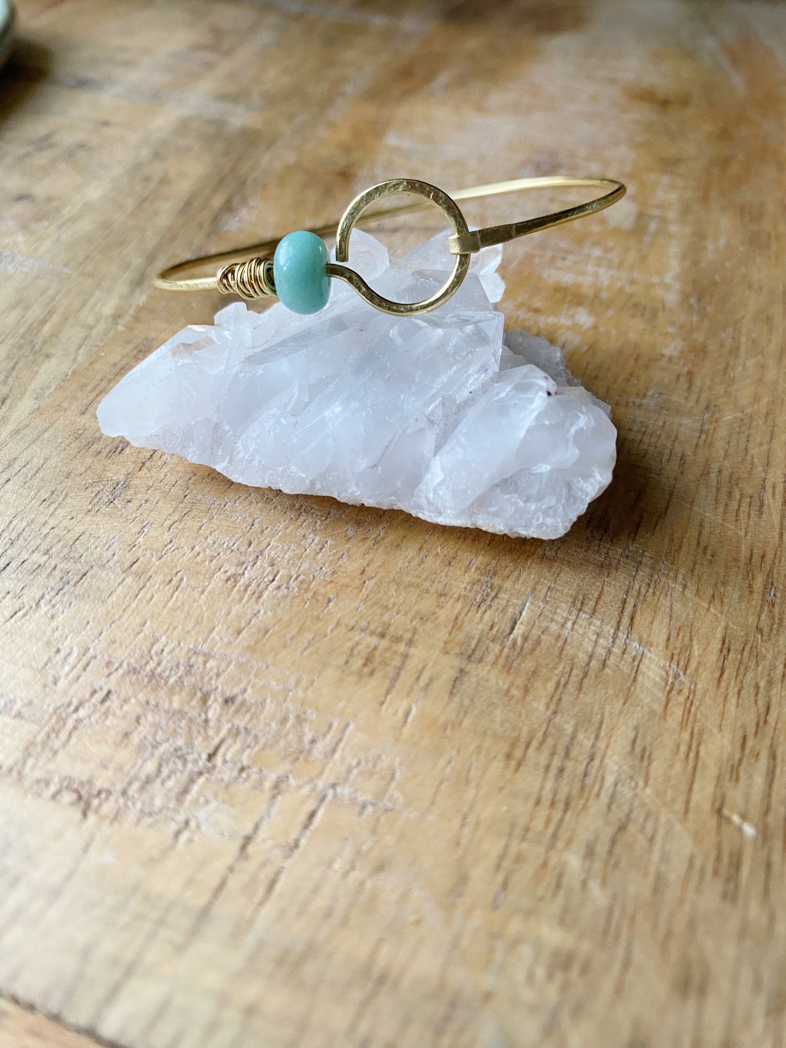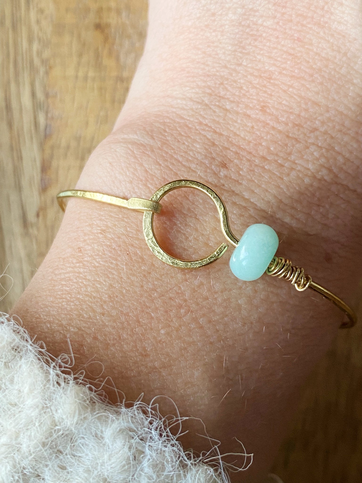 >Handgemachte Manschette aus Juwelier Messing mit Amazonit