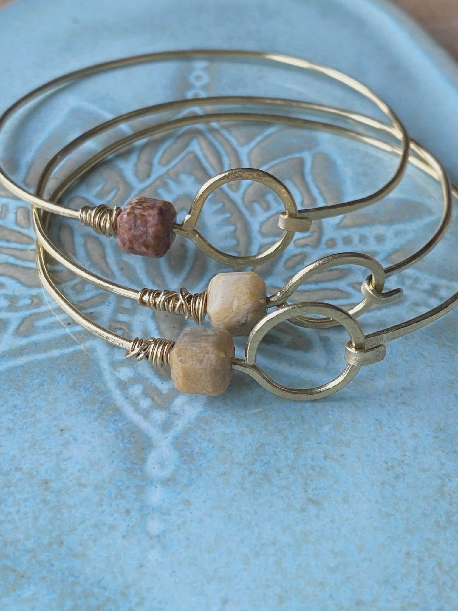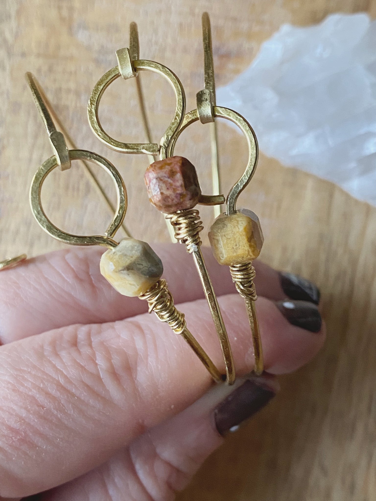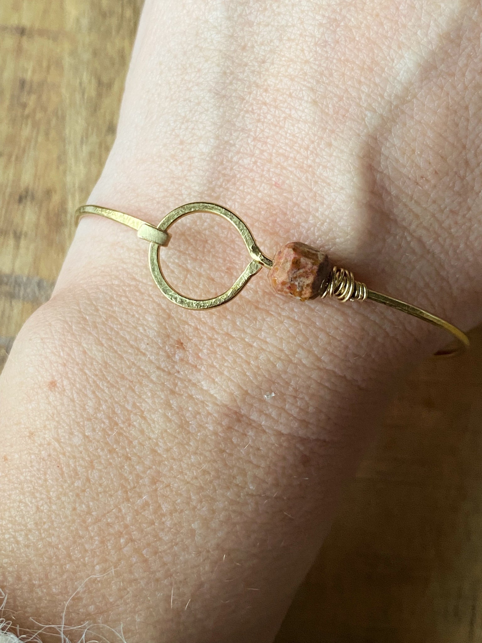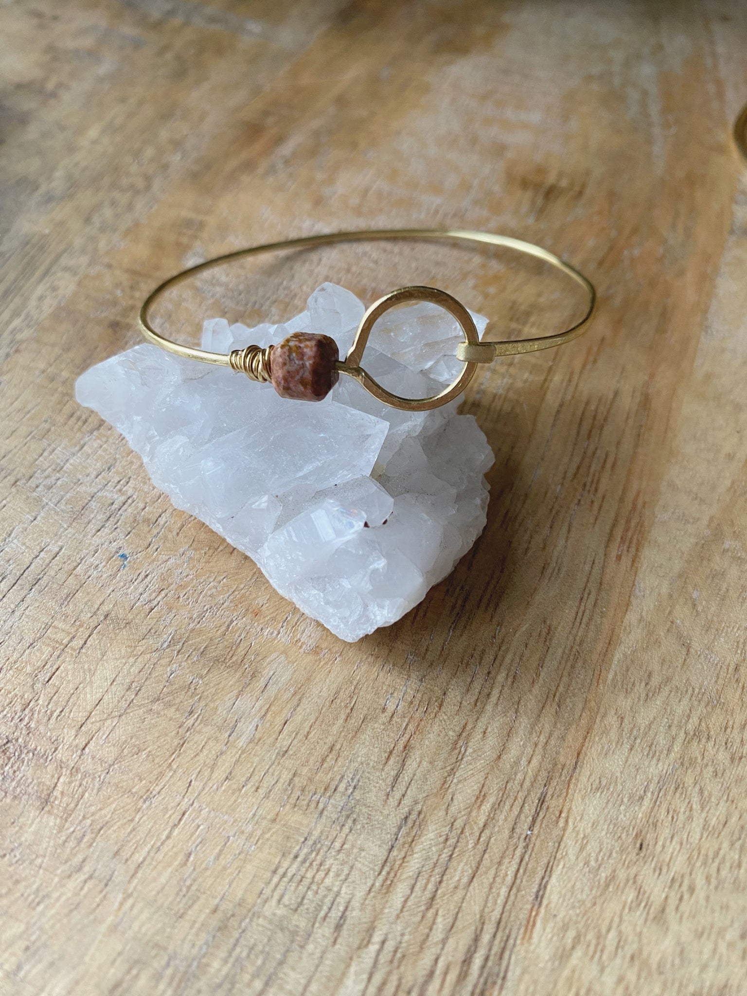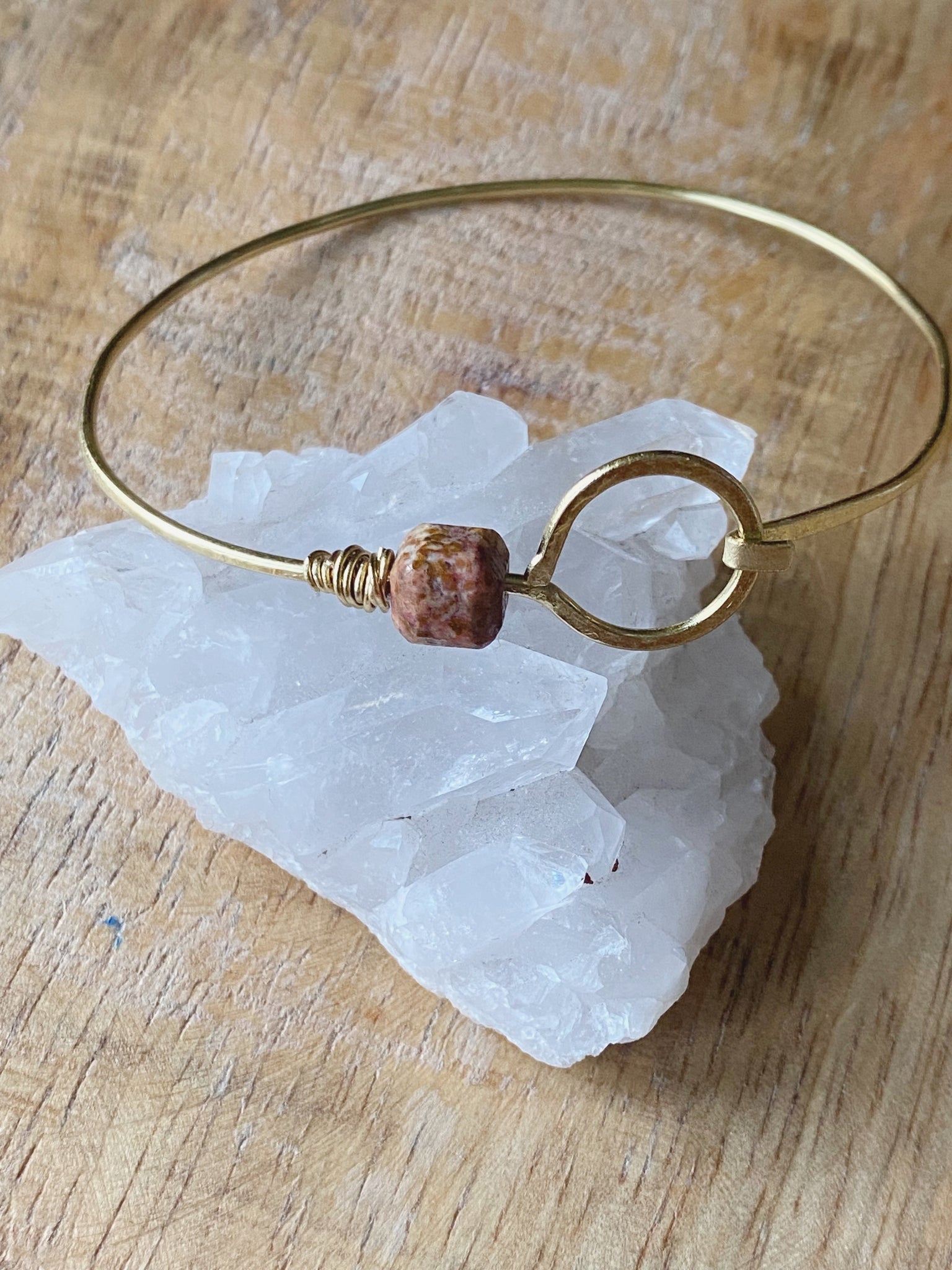 >Handgemachte Manschette aus Juwelier Messing mit Jasper Nugget